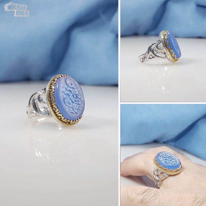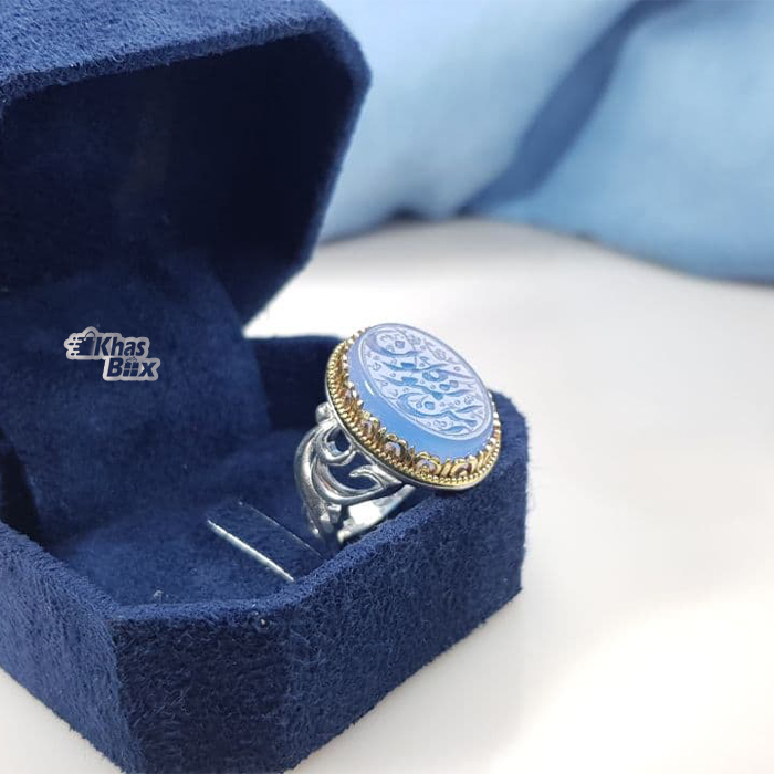 انگشتر عقیق کبود مردانه خطی کد 2609