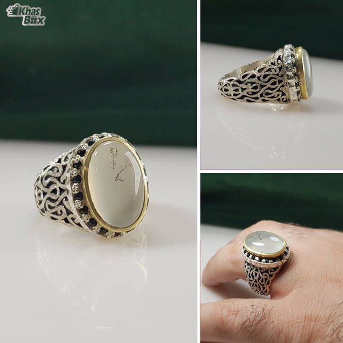 انگشتر عقیق مردانه یمنی شجر طبیعی کد 44