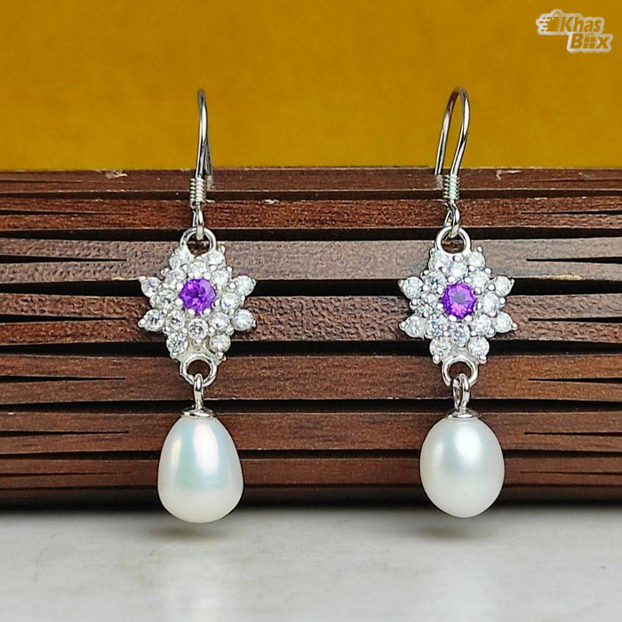 گوشواره نقره مروارید و آماتیست اصلی