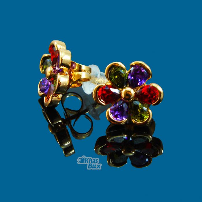 گوشواره طلایی ظریف طرح گل با نگین چند رنگ مدل GT-22