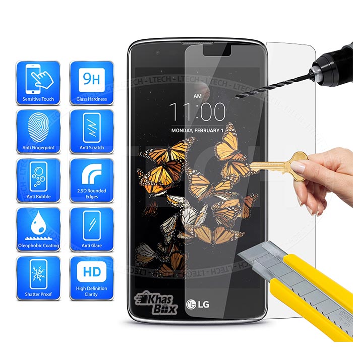 گلس موبایل ال جی K8 در برابر ضربه و ایجاد خط و خش مقاوم است این گلس شیشه ای دارای کیفیت و وضوح بالا مطابق با صفحه نمایش گوشی می باشد.