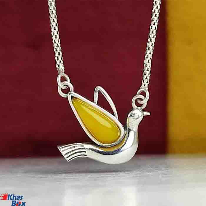 گردنبند عقیق زرد طرح کبوتر