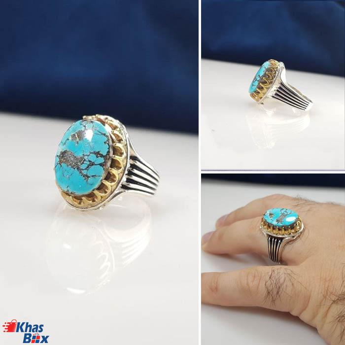 انگشتر فیروزه نیشابوری طبیعی مردانه مدل 52