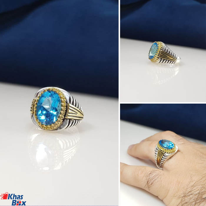 انگشتر توپاز مردانه سبز دستساز کد 39