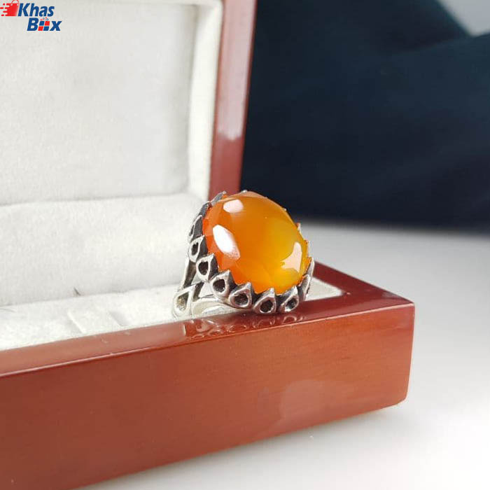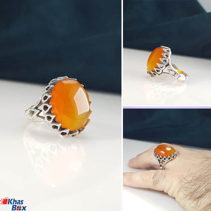 انگشتر عقیق خراسانی پرتقالی مردانه