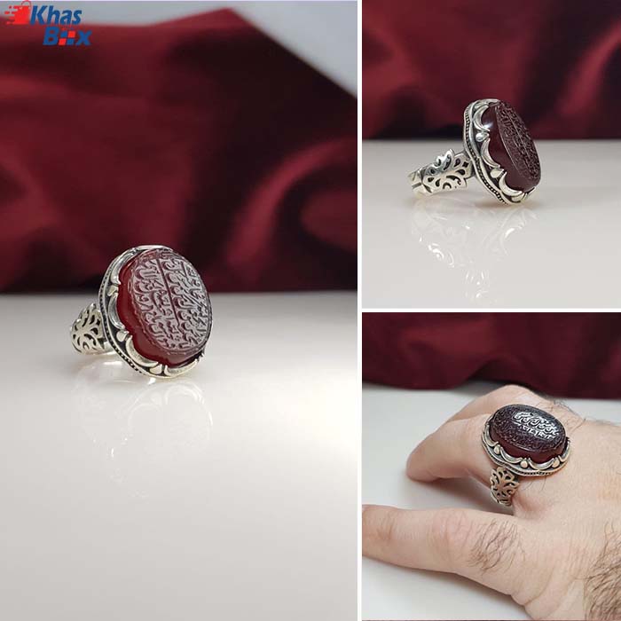 انگشتر عقیق مردانه قرمز خطی کد 2049