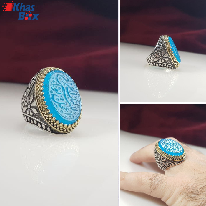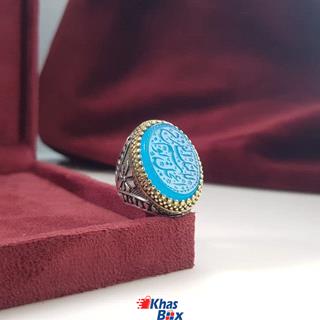 انگشتر خطی مردانه عقیق آبی 16 ذکر کد A2007