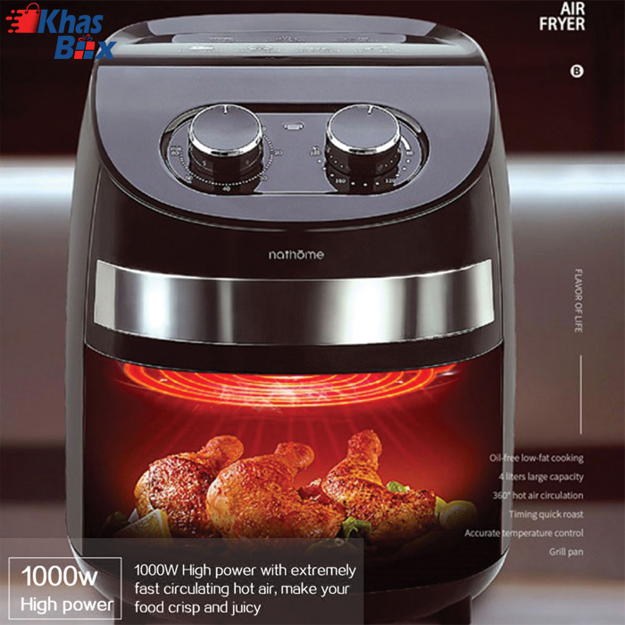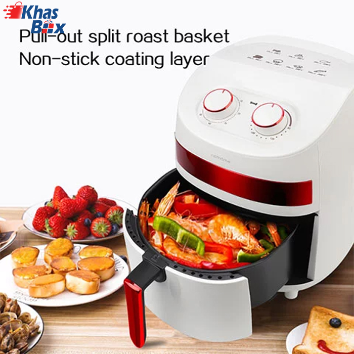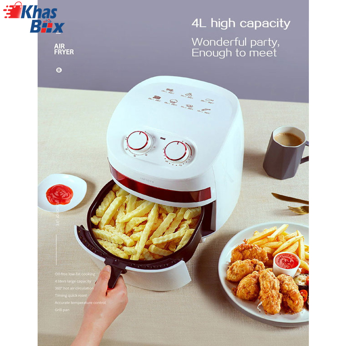 چرخش هوای 360 درجه برای پخت بهتر غذا, دارای تنظیم دما تا 200 درجه سانتی گراد, سینی جدا شونده برای شستشوی راحت تر, قابلیت یخ زدایی