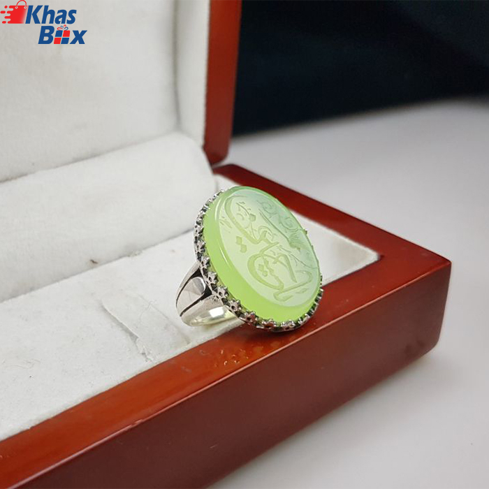 انگشتر عقیق مردانه سبز خط لیزری کد 778