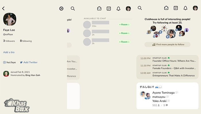علاوه بر این شما دو دعوت نامه برای کمک به پیوستن دوستانتان به این اپلیکیشن دریافت میکنید. کلابهاوس در حال حاضر حدود 600000 عضو دارد. برای مقایسه، توییتر 330 میلیون کاربر دارد و این در حالی است كه فیس بوك 2.7 میلیارد کاربر فعال دارد.