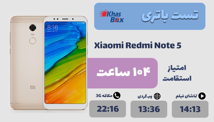 پس از تست شارژر و سرعت شارژ به قسمت تست باتری میرسیم. باتری اورجینال شیائومی Redmi Note 5 دارای امتیاز بسیار خوب 104 ساعته است که استقامت بسیار خوبی دارد. این باتری علاوه بر حالت آماده به کار خود، در همه سناریوهای اختصاصی مانند تماشای فیلم، وبگردی و تماس هم نتیجه بسیار خوبی را کسب کرد. برای مقایسه ردمی نوت 4 دارای امتیاز استقامت 119 ساعته است.